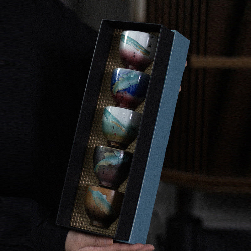 Chinese Kiln Ceramic Set of Five Cups in Gift Packaging